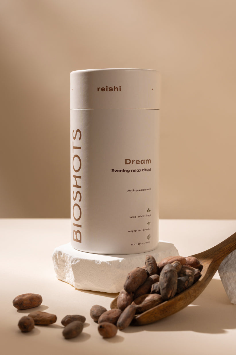 Een relaxed avondritueel. De Dream Shot is een uitgebalanceerde mix van biologische superfoods en zorgvuldig geselecteerde vitamines en mineralen.